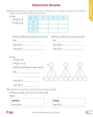 Dados los conjuntos, realiza el producto cartesiano y completa los espacios en blanco Aritmética