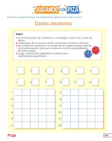 2. Cada grupo tira 5 veces los dados coloreando el número obtenido.