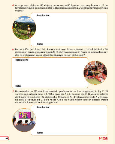 e. En un salón de clases, 36 alumnos elaboran frases alusivas a la solidaridad y 20