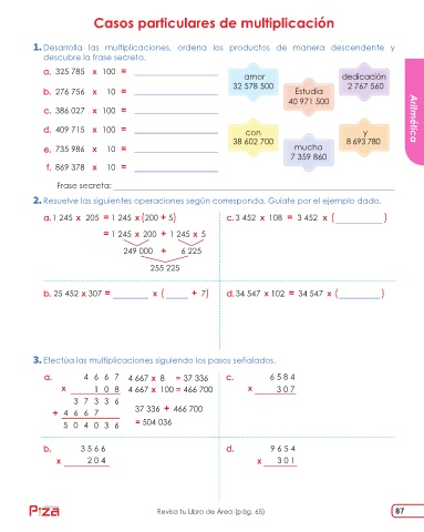 Efectúa las multiplicaciones siguiendo los pasos señalados.