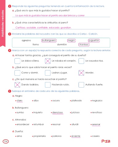 Habilidades verbales b. ¿Qué otras características le atribuirías al perro?