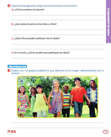 b. ¿Qué pide el poema a los niños y niñas? Comprensión de textos