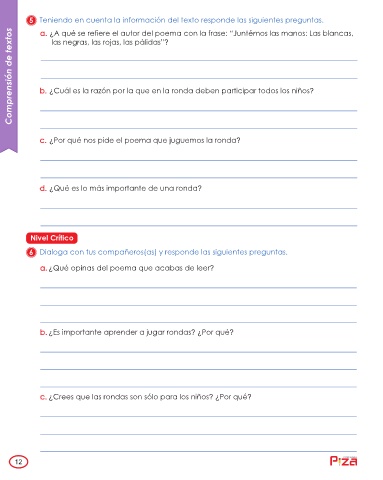 Comprensión de textos b. ¿Cuál es la razón por la que en la ronda deben participar todos los niños?