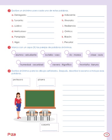 2 Escribe un sinónimo para cada una de estas palabras.