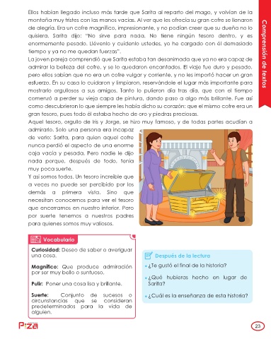 montaña muy tristes con las manos vacías. Al ver que les ofrecía su gran cofre se llenaron