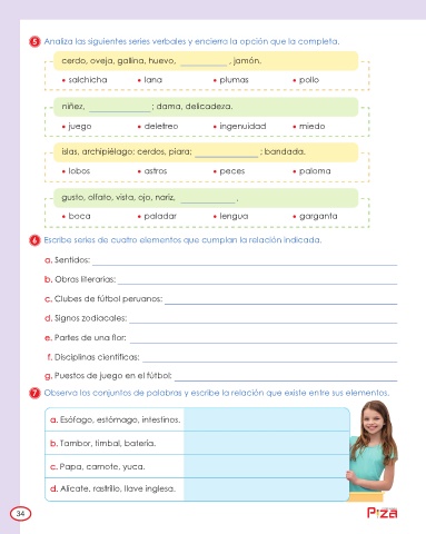 7 Observa los conjuntos de palabras y escribe la relación que existe entre sus elementos.