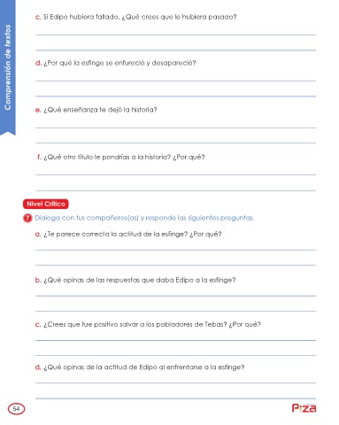 Comprensión de textos d. ¿Por qué la esfinge se enfureció y desapareció?