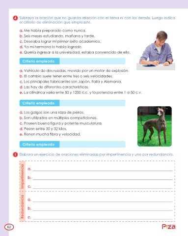 5 Elabora un ejercicio de oraciones eliminadas por impertinencia y uno por redundancia.