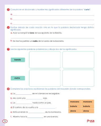 7 Lee las siguientes palabras polisémicas y dibuja dos de los significados.