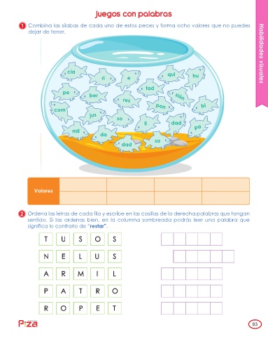 1 Combina las sílabas de cada uno de estos peces y forma ocho valores que no puedes