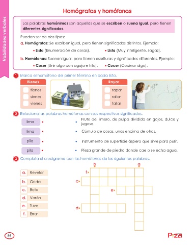 2 Relaciona las palabras homófonas con sus respectivos significados.