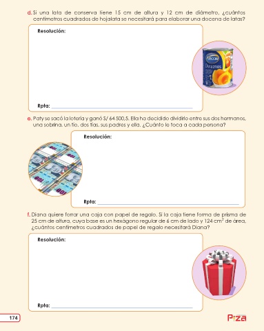 f. Diana quiere forrar una caja con papel de regalo. Si la caja tiene forma de prisma de