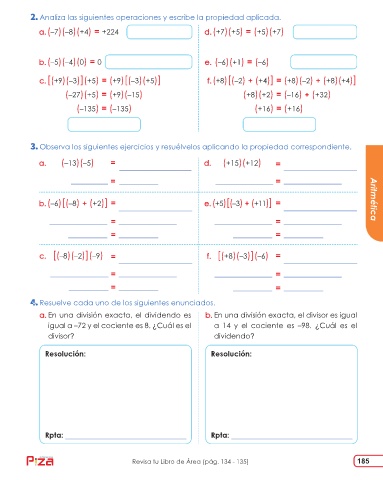 Revisa tu Libro de Área (pág. 134 - 135) 185