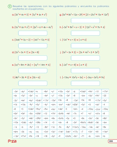 Resuelve las operaciones con los siguientes polinomios y encuentra los polinomios