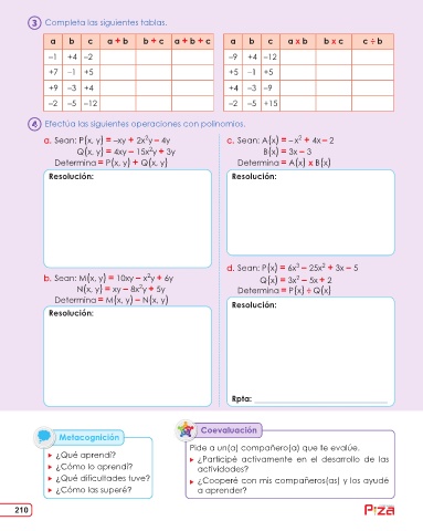 Efectúa las siguientes operaciones con polinomios.