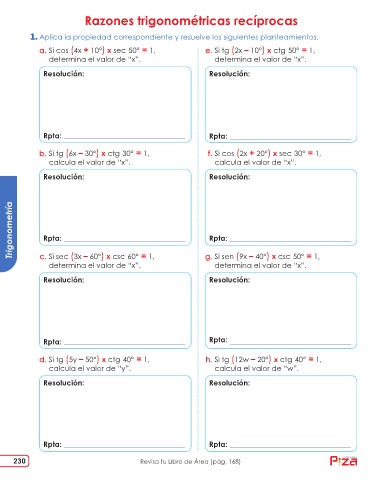 230 Revisa tu Libro de Área (pág. 168) ediciones