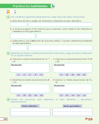 Determina la media o cuarta proporcional en cada caso y luego encierra la alternativa