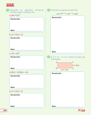 Desarrolla los siguientes productos Factoriza es siguiente polinomio.