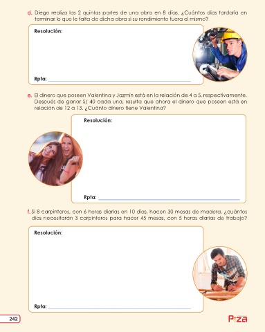 d. Diego realiza las 2 quintas partes de una obra en 8 días. ¿Cuántos días tardaría en