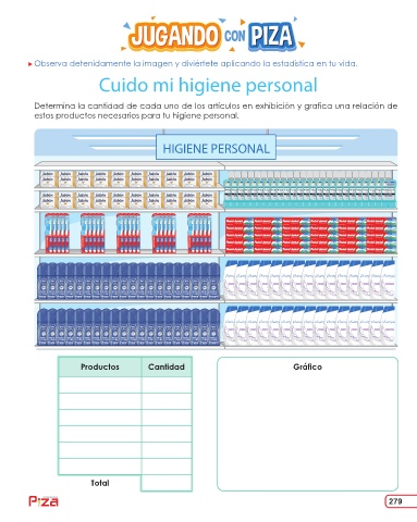 Determina la cantidad de cada uno de los artículos en exhibición y grafica una relación de