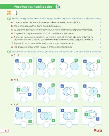 a. Las relaciones binarias son correspondencias entre dos conjuntos. ( )