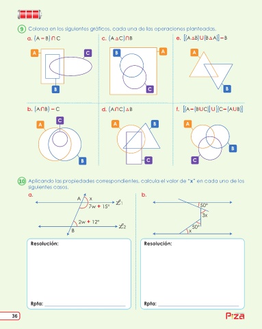Colorea en los siguientes gráficos, cada una de las operaciones planteadas.