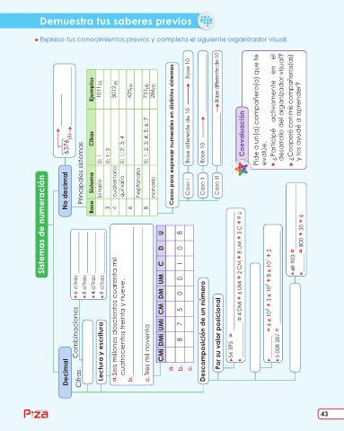 6376 (8) Cifras 0; 1 0; 1; 2 0; 1; 2; 3; 4 0; 1; 2; 3; 4; 5; 6; 7 Casos para expresar numerales en distintos sistemas Base diferente de 10 Base 10 Coevaluación evalúe.