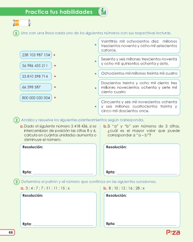Une con una línea cada uno de los siguientes números con sus respectivas lecturas.