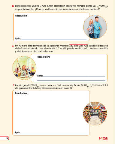 e. Un número está formado de la siguiente manera 5a7 a4a 2a1 73a. Escribe la lectura