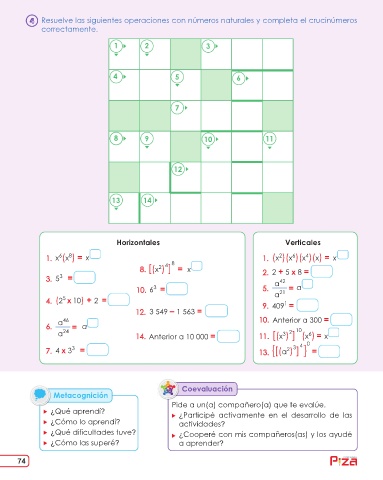 Resuelve las siguientes operaciones con números naturales y completa el crucinúmeros