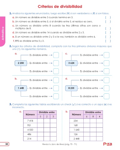 Aritmética d. Un número es divisible entre 14 cuando es divisible entre 2 y 3. ( )