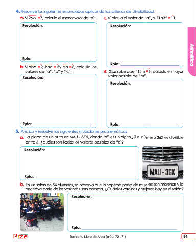 Revisa tu Libro de Área (pág. 70 - 71) 91