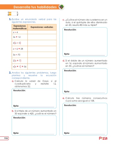 matemáticas Expresiones verbales Resolución: