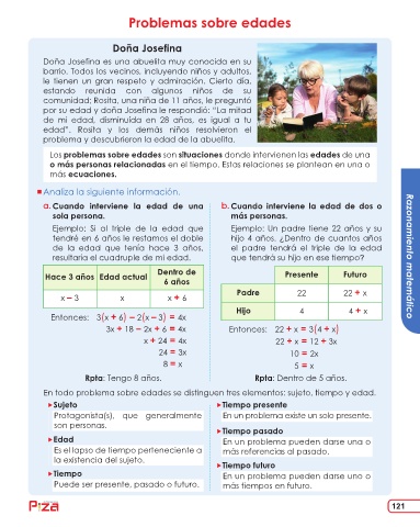 En todo problema sobre edades se distinguen tres elementos: sujeto, tiempo y edad.