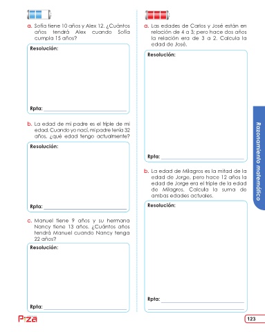 a. Sofía tiene 10 años y Alex 12. ¿Cuántos a. Las edades de Carlos y José están en