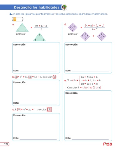Analiza los siguientes planteamientos y resuelve aplicando operadores matemáticos.