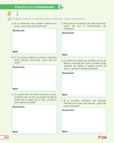 doble de la edad de su hijo, ¿cuántos f. Si el pasado mañana del pasado