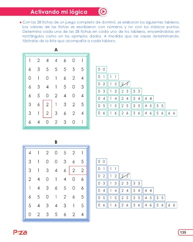 Determina cada una de las 28 fichas en cada uno de los tableros, encerrándolas en