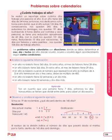 Los problemas sobre calendarios son situaciones donde se debe determinar el