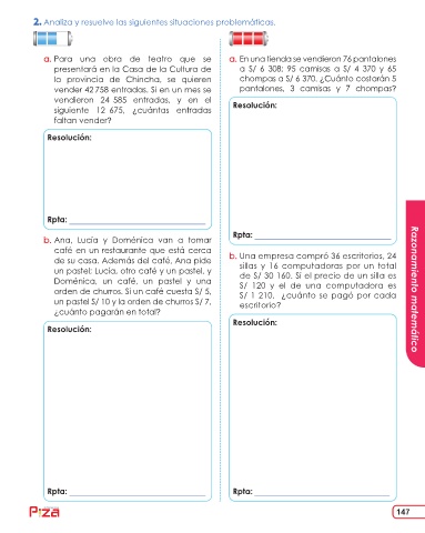 a. Para una obra de teatro que se a. En una tienda se vendieron 76 pantalones