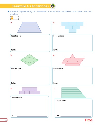 Analiza las siguientes figuras y determina el número de cuadriláteros que posee cada una