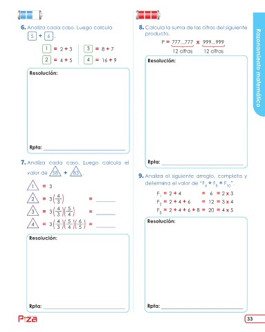 Analiza cada caso. Luego calcula Calcula la suma de las cifras del siguiente