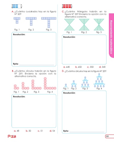 A. ¿Cuántos cuadrados hay en la figura C. ¿Cuántos triángulos habrán en la