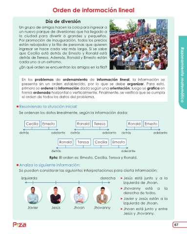 En los problemas de ordenamiento de información lineal, la información se Razonamiento matemático