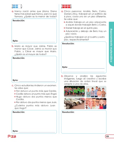 a. Nancy nació antes que Liliana. Diana a. Cinco personas: Andrés, Beto, Carlos,