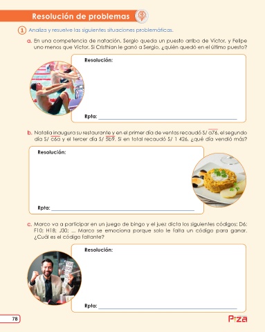 b. Natalia inaugura su restaurante y en el primer día de ventas recaudó S/ a76, el segundo