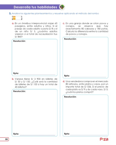 Analiza los siguientes planteamientos y resuelve aplicando el método del rombo