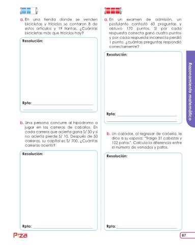 bicicletas y triciclos se contaron 8 de postulante contestó 60 preguntas y