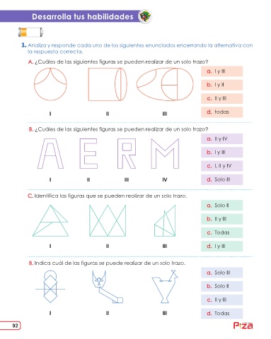 B. Indica cuál de las figuras se puede realizar de un solo trazo.